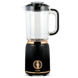 Blender de masa cu 3 accesorii Zass ZSB 21 Rose Gold, 380 W, 2 trepte de viteza, Cana transparenta de 1000 ml, Rasnita de 300 ml si Storcator citrice, Negru
