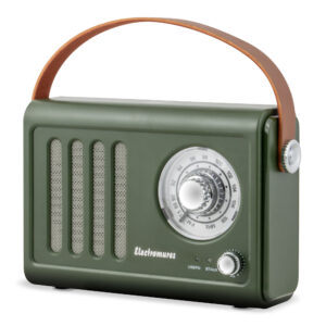 Radio retro cu difuzor Bluetooth Electromures EM 1006 Verde, 5V, Baterie incorporata 1500 mAh, Autonomie 6 h, Port USB, Port mini jack, Antena telescopica, Verde