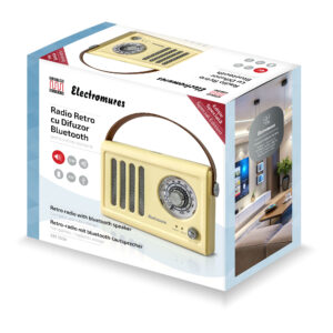 Difuzor Bluetooth cu Casetofon si Radio FM/AM/SW1/SW2 Electromures EM 1011, USB, Microfon, Mufa pentru casti 3.5 mm, Editia Populara si Lautareasca, Include o caseta originala, relizata in parteneriat cu Electrecord, Bej